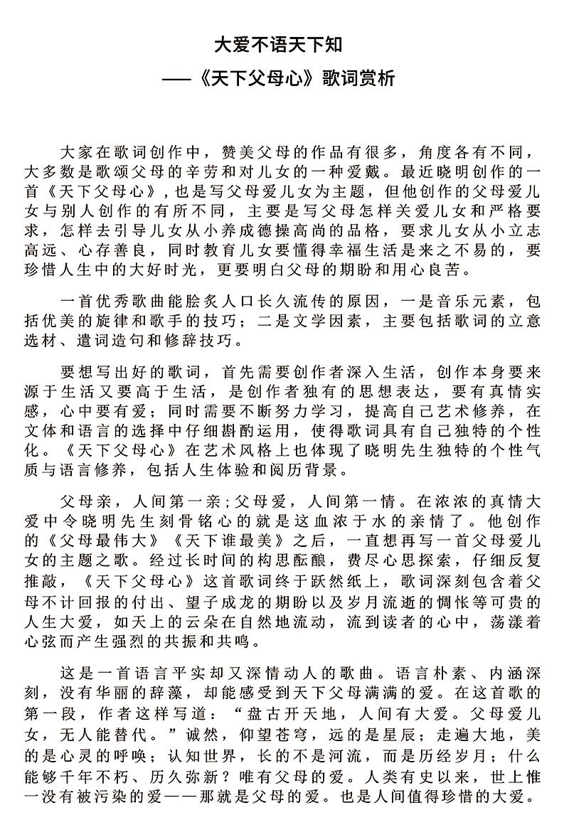 《父母最伟大》 演唱:刘和刚,作词:张晓明,作曲:戚建波