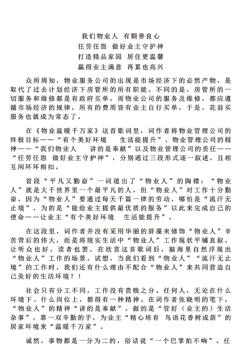 歌曲《物业温暖千万家》