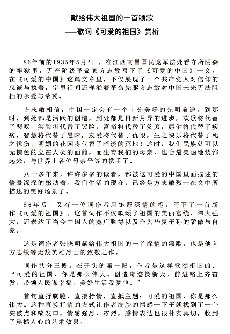 歌曲《可爱的祖国》