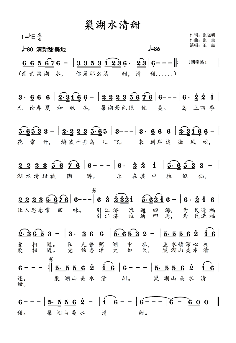 歌曲《巢湖水清甜》