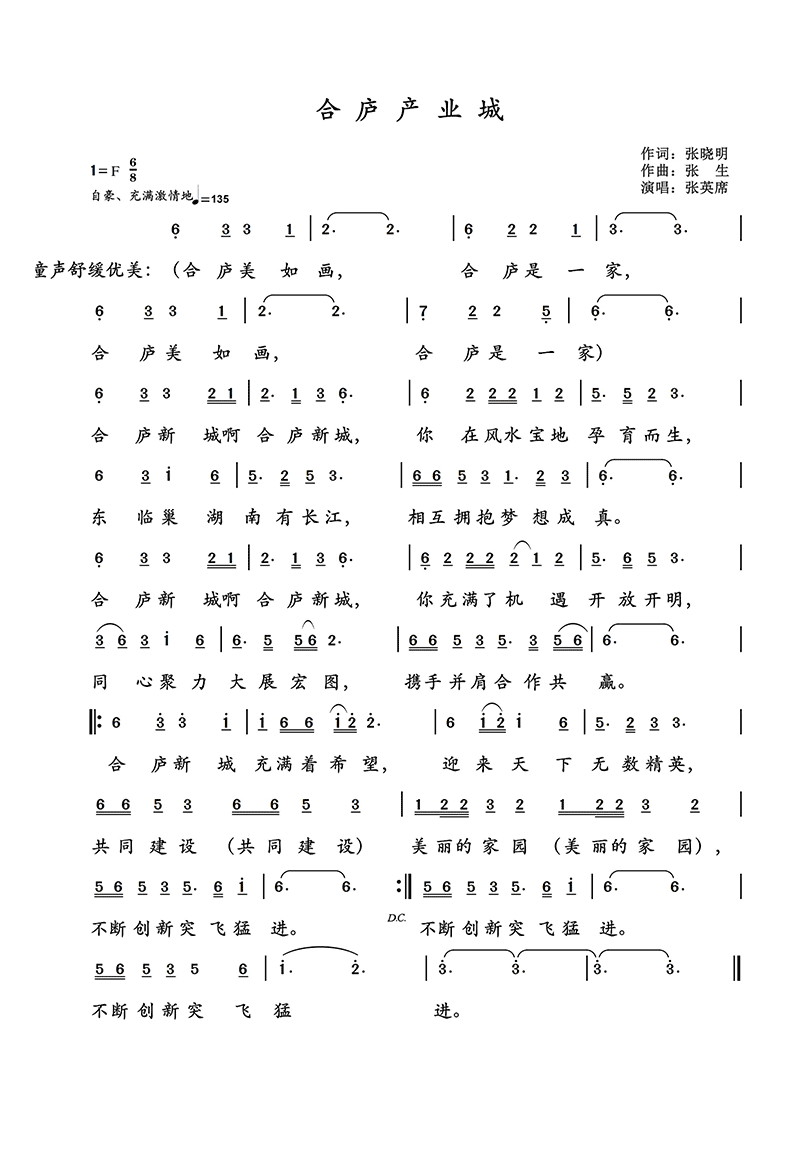 《共创庐江新未来》 演唱:戴玉强,作词:张晓明,作曲:张生
