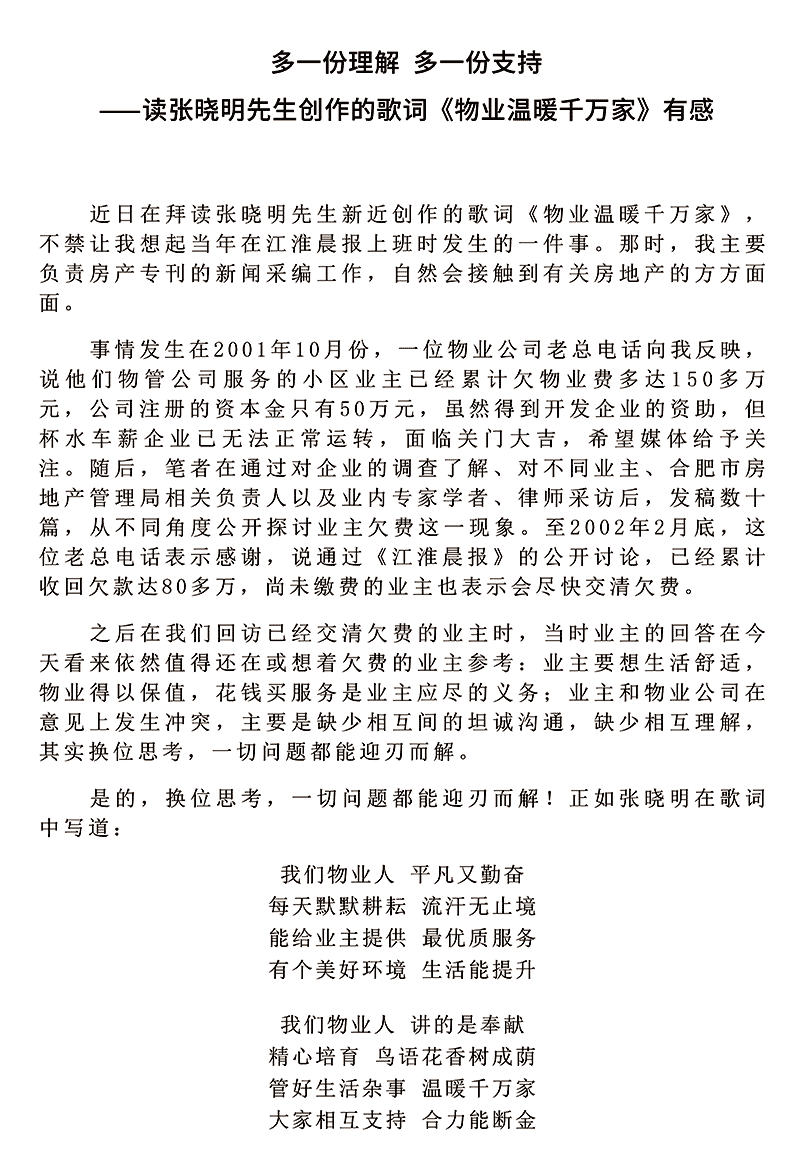 歌曲《物业温暖千万家》